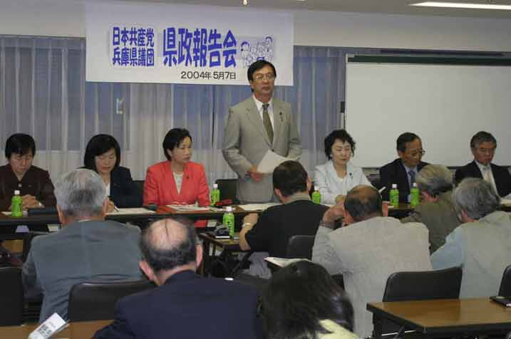 党県議団は、5月7日に予算議会の「県政報告会」を開催しました。 大沢たつみ参議院議員は「この間、鳥インフルエンザの問題などでもいち早く地元に駆けつけ、町長さんの要望や特に業者の方の悲痛な声を聞き、具体的な要望を知事に出した。国会でもその声を聞いて自分の痛みとして追及してきた。また、出荷制限によるブランド卵の損失問題では国基準を上回る補てんを実現。共産党県会議員団の頑張りもあり今回の補償が出来たと思う。これからも力を合わせて頑張っていきたい」との挨拶。 つづき研二県議(団幹事長)は、いっせい地方選後はじめての県予算の議会のなか、選挙で後退し、8議席となった日本共産党が、随所で存在意義を発揮したことを報告。 県会議員団としては、この間現地調査や分析などを機敏におこない政策化してきたこと。無駄な開発にメスを入れ、警察問題にも取りくんできた事などを報告しました。 三十五人学級(小学校一年生)、鳥インフルエンザ対策の拡充、住宅再建支援法の成立、「県行革」の福祉医療の実施延期など、井戸県政が小泉政権といっしょに国民・県民いじめ、無駄な開発を推進をするなかでも、「大きな成果」をあげていることを強調。 その成果の原動力となっているものとして、一つに国・地方との連携。鳥インフルエンザ問題など、大沢参議院議員と機敏に現地調査や分析、当局交渉などを行なってきたこと。二つに、県民の運動と一体となった取組みです。「県行革」の福祉医療改悪を押し返し、延期させたことにも現れています。最後に県議団としての積極的な提案活動です。議会改革の先駆的な提案にはじまり、四年連続の予算組み替えの修正提案など、県政を改革する党として、役割を発揮してきました。 四〇人を超える参加者からは、「解放同盟べったりの県政にメスを」「被災高齢者のいのちを守る県政の実現へ」「震災融資の据え置き延長の打ち切りをさせない取組みを」「有事法制、国民保護法の動きに注目」「重大な警察の裏金を他府県・国とも連携して」など、時間いっぱいまで、引き続き県政の改革を進めていく意見が相次ぎました。