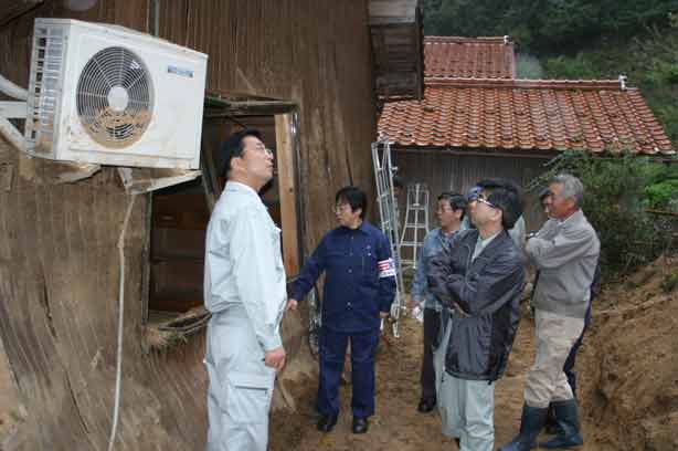 31日、党県議団は但馬の地元町議とともに、但馬地域での台風被害の調査を行ないました。 「町が孤立してしまった」「このままでは集落が維持できないほどの被害」という但東町。谷筋を巨大な流木と土砂が襲った奥赤地区では、「農地の8割が土砂に埋まった。山の多くの杉も傾いている。雪が降るまでになんとか対策を」と、自宅が大きな被害を受け、疲労困憊した区長から切実に訴えられました。 また、薬王寺地区では、家の中に流れ込み、腰までつかった土砂の撤去作業に疲れきった表情で、「川の上流にはまだ土砂がたまっていて大変」「建て直ししないとダメかも」と、不安を訴えます。 城崎町では、21号と23号両方の台風被害を受けました。温泉旅館では、「早急に再開させるため大きな借金をした。特別な融資を」と要望を聞き、同町大谷では、「仏壇、畳、建具全部だめになった」と堤防の漏水の抜本対策を訴えられました。 さらに、和田山町でも、川沿いの集落や裏山がくずれた家々などが被害を受けた状況、本堂や墓石に大きな被害をうけたお寺や、身障福祉施設の再建への町負担の免除の要望を聞きました。 この調査には、山下芳生元参院議員、新町美千代、杉本ちさと、練木恵子、毛利りん県議が参加しました。