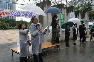 障害者自立支援法で応益負担が導入され、大幅な負担増と施設からの退所やサービス削減が相次ぐなか「『ストップ・ザ応益負担』兵庫の会」は26日、神戸市中央区の東遊園地で、自立支援法を見直し応益負担の撤廃、障害者福祉の予算増を掲げて集会を開きました、 津田充幸同会代表が主催者あいさつ。障害の重い人ほど負担が大きく、生きていく最低限のサービスを受けるにも金が必要で、障害のある人に向かって自己責任で生存しろといってるのが障害者自立支援法の応益負担だと批判し、「障害のある人が生き続けてきた意味を黙殺し、社会の重荷のように扱う政治と行政のあり方を改めさせよう」と呼びかけました。 五百人が参加(賛同三十五団体)。障害者や家族、職員がそれぞれ実態を報告し、「応益負担の撤廃」を訴えたアピールを採択しました。参加者は集会後繁華街をパレードしました。 娘が施設に入っているという神戸市垂水の男性は、以前は自己負担がなかったのが毎月二万円を負担しなければならなくなったことを話し、「応益負担はなくしてほしい」と語りました。 集会には、日本共産党の瀬戸恵子衆院比例候補、味口としゆき衆院兵庫一区候補、星原さちよ県議が参加しました。 |