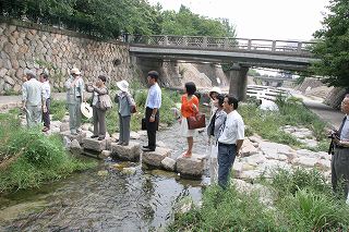 増水で児童ら五人が犠牲になった神戸市灘区の都賀川で6日、日本共産党兵庫県会議員団と西下勝神戸市議、瀬戸恵子、味口としゆき氏が現地調査しました。