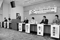 日本共産党兵庫県委員会は12月23日、兵庫県民会館で、「景気悪化から国民生活を守る 日本共産党緊急経済提言」報告会をひらき、約100人が参加しました。 報告にたった吉井英勝衆院議員(写真右)はまず、大局的な視点が大切と指摘し、円高・低金利政策を決めた85年のプラザ合意などアメリカいいなりの経済政策が日本経済のゆがみの根本にあること、自民党政治が、規制緩和など大企業の利益第一の政策をすすめてきた歴史から、「カジノ資本主義」の破綻、金融危機まで、日本と世界の経済を縦横に解明しました。 いま、大量解雇をやめさせ雇用を守ること、貸し渋り・貸しはがしから中小企業を守ること、福祉を拡充することが危機打開に重要だと述べ、それを妨げる、アメリカいいなり・大企業優先の二つの政治悪を正すことがいよいよ必要だと強調しました。 瀬戸恵子・金田みねお氏もこの間の経済団体との懇談を報告。フロアからも発言がありました。