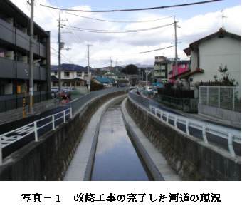 その後寺畑前川に対しては護岸の低いところについて部分的にパラペット工事を実施し、河床の切り下げ工事も行っている。兵庫県はこれだけでは不十分として地下調節池の計画を立て事業を進めようとしている。