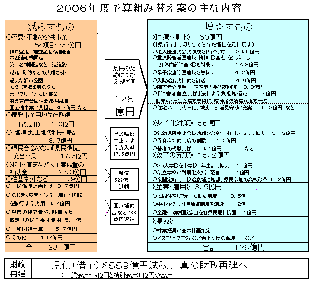 2006年度の兵庫県予算案に対して、以下の6つの柱にもとづいて組み替えることを提案します。