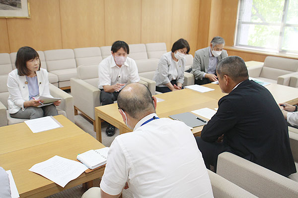 党県議団は、被害発生直後の5月11日、現地にうかがい、現地調査と住民の皆さんから要望の聞き取りをおこない、5月15日に緊急の申し入れを行いました。